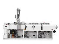 In combination with the pipeheads, the parallel 36D twin-screw extruders are optimally designed for processing a wide range of PVC formulations. TheHPG (high performance geometry) screw concept leads to high process engineering flexibility; it ensures careful and homogeneous material processing. The 36D long processing unit increases process reliability and guarantees high production security. All pipeheads are designed according to thermal and fluidic aspects in order to ensure excellent pipe quality. They function according to the mandrel holder principle which has proved to be ideal, especially when processing thermally sensitive materials. Perfect melt distribution ensures small wall thickness tolerances, thus making production economical. |